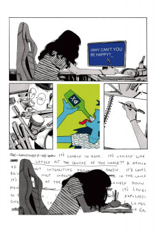 Cartoonist ZOE THOROGOOD records six months of her own life as it falls apart in a desperate attempt to put it back together again in the only way she knows how. IT'S LONELY AT THE CENTRE OF THE EARTH is an intimate metanarrative that looks into the life of a selfish artist who must create for her own survival.