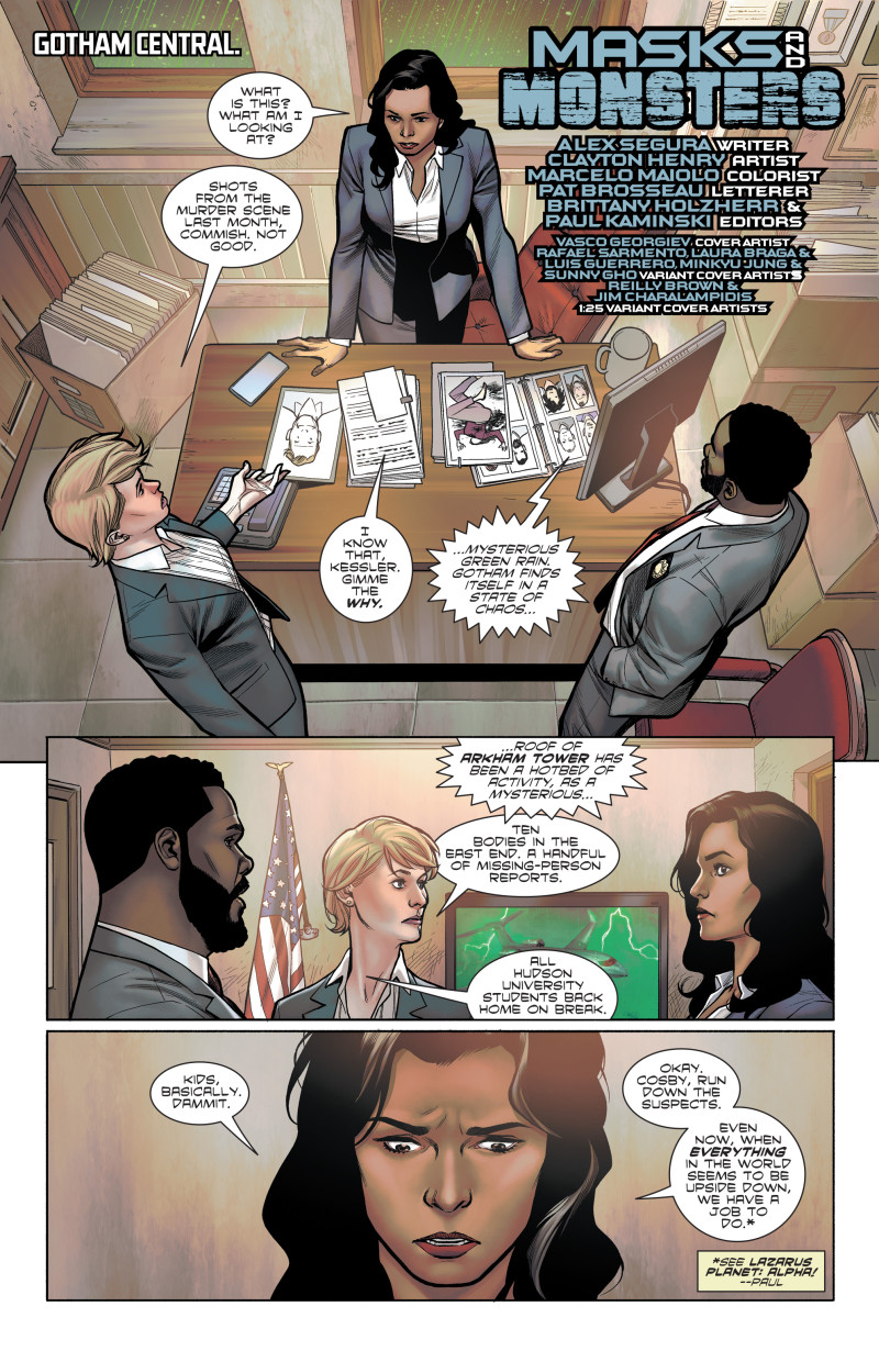 Ancient and dangerous power has been awakened following the eruption of the Lazarus Volcano, and this surge of fantastical power will affect the DC Universe forevermore! In Lazarus Planet: Legends Reborn, we'll explore corners of the planet newly awakened and primed to restore some heroes and villains long forgotten! With the help of Nightwing, can new hero City Boy hope to commune with Gotham in time to save it? Who are the mysterious trio claiming to be resurrected siblings of Raven? How far would the Question go to chase a lead across a transformed Gotham City? And will the flame of Firestorm burn out yet another horrific host? Not if Harley Quinn has anything to say about it!
