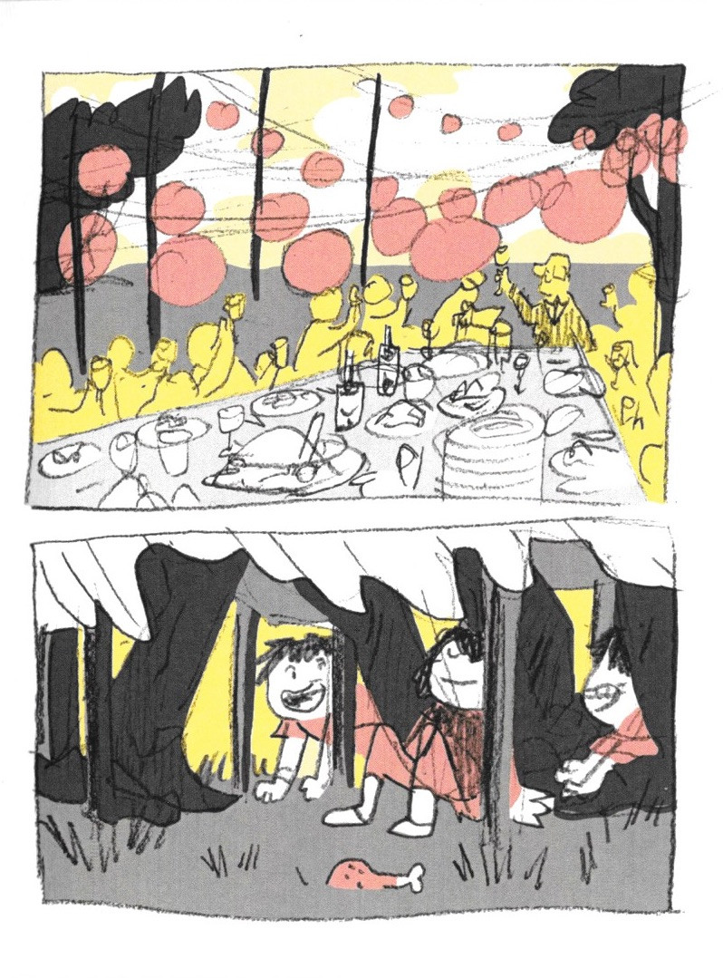 Françaisun groupe monte un table sur le bord de la plage afin de célébrer le noël du campeur.