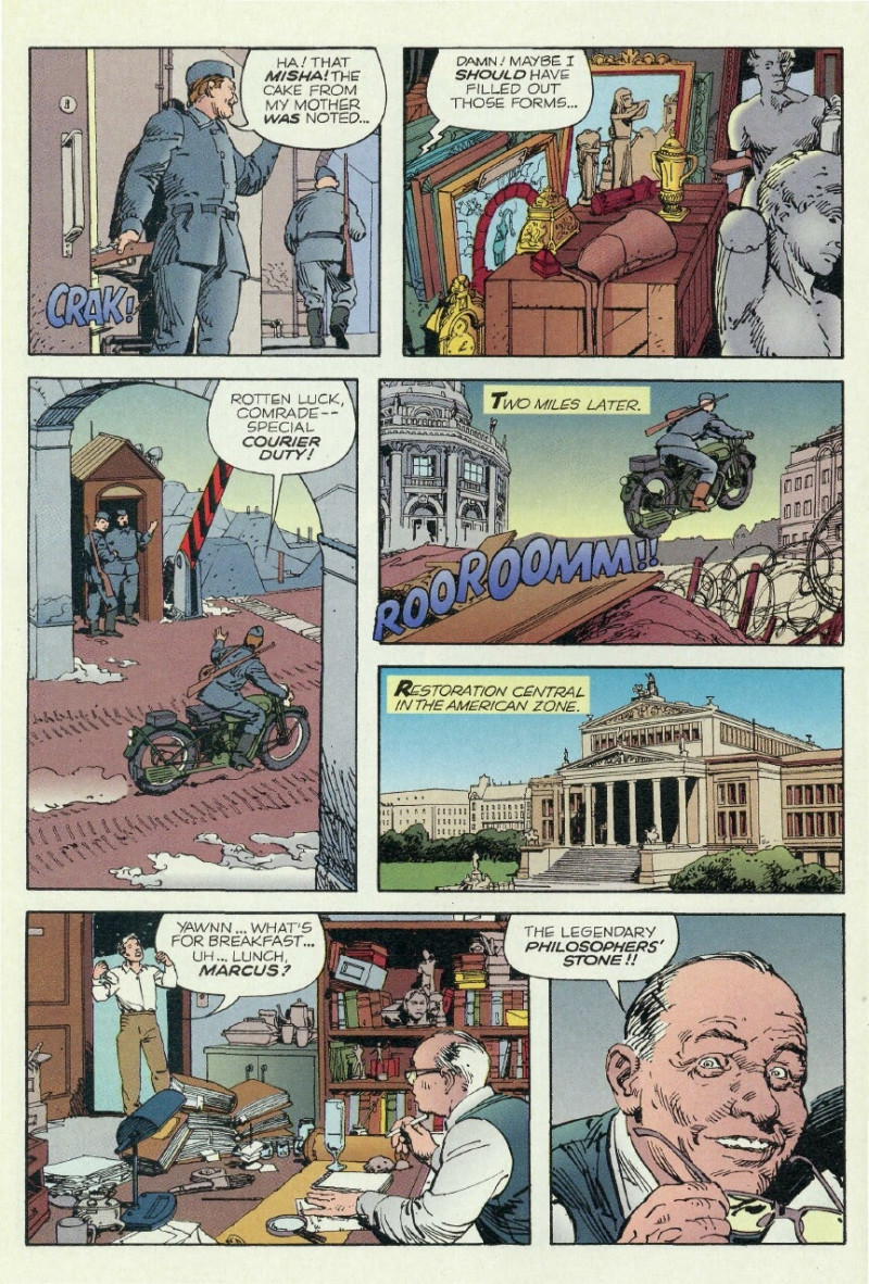 1947 post-war Germany. Indy is braving the political turmoil and treacherous rubble of Berlin to find the Key of Solomon, a scroll detailing the whereabouts of the legendary Philosopher's Stone, fabled to have the power to turn lead to gold and bring the dead to life. Indy sets off for the stone, dodging Soviet bureaucrats and Nazis -- all of them hunting the same prize! Will the Third Reich rise again?