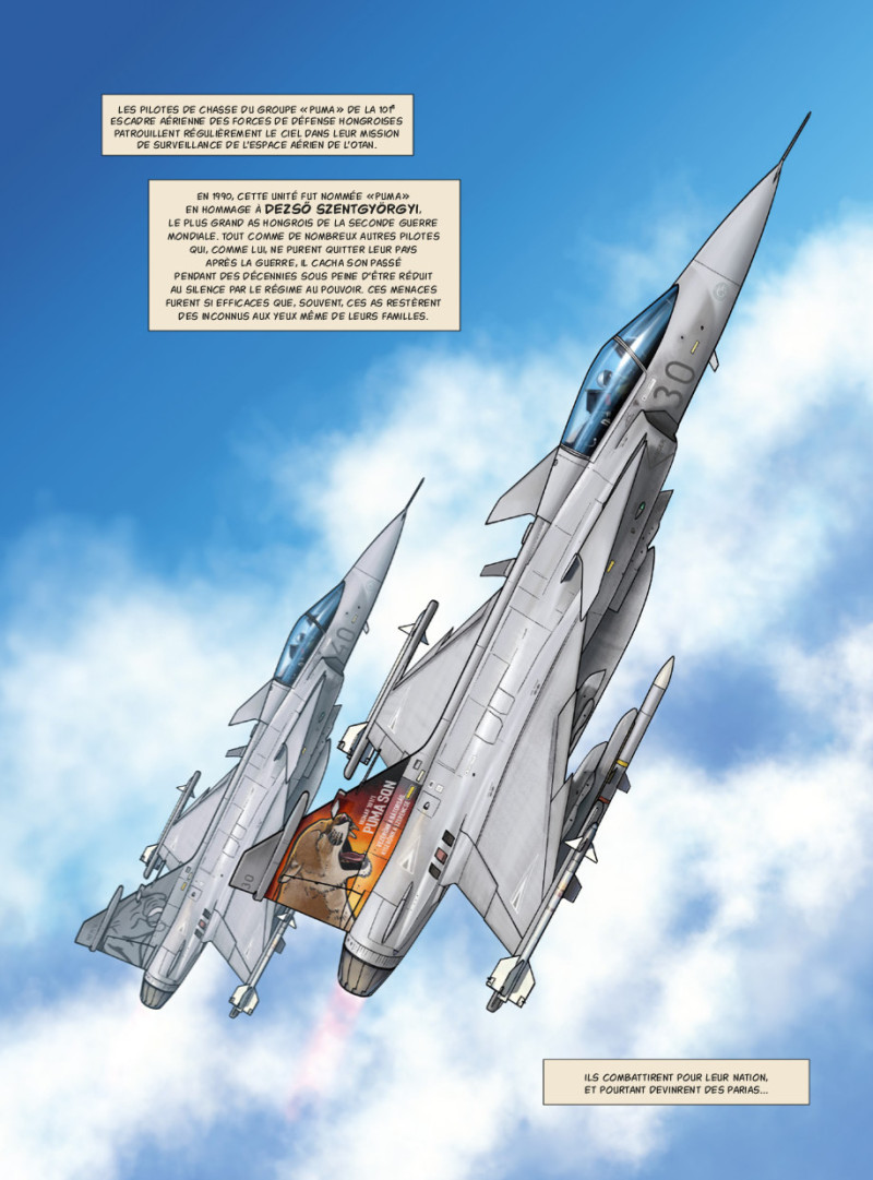 Les pilotes de chasse "Puma" de la 101e Escadre Aérienne des forces de défense hongroises patrouillent régulièrement les cieux dans leur mission de défense de l'espace aérien de l’OTAN. En 1990, cette unité fut nommée ainsi en hommage à Dezso Szentgyorgyi, le plus grand as hongrois de la seconde guerre mondiale. Tout comme de nombreux autres pilotes qui, comme lui, ne quittèrent pas leur pays après la guerre, il dut cacher son passé pendant des décennies, réduit au silence par le régime au pouvoir. Ce fut fait de façon si efficace que souvent, ils restèrent des inconnus aux yeux de leurs propres familles. Ils combattirent pour leur nation, et pourtant devinrent des parias...