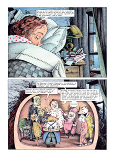 Plus de quarante ans après sa dernière bande dessinée, Nicole Claveloux reprend du service et livre une oeuvre d'une richesse incroyable. Jonglant avec brio entre différents styles de narration, l'artiste joue avec les limites du cadre, déforme les phylactères et convoque des apartés avec le lecteur pour jouer de la mise en abîme. Elle n'a rien perdu de son goût pour le baroque et son dessin conserve l'impact et l'étrangeté qui ont fait sa réputation.