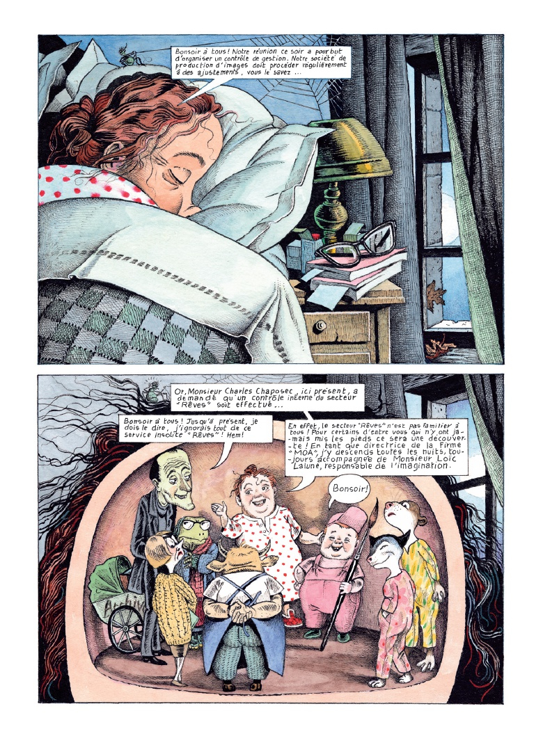 Que se passe-t-il dans la tête de Nicole Claveloux lorsqu'elle s'endort ? Il y a d'abord Loïc Lalune, le chef décorateur de l'imagination, Lili et Zizi Frisson spécialistes des sensations ou encore Madame Reine Bancale, experte de la mémoire en charge des archives et bien sûr la Grande directrice, Nicole Claveloux elle-même. Mais voilà qu'une belle nuit débarque Charles Chaposec, responsable discernement du département «Logique et raison», un homme rigide qui souhaite effectuer un contrôle de gestion dans le secteur des rêves. Et c'est ainsi que notre joyeuse bande s'embarque dans un voyage haut en couleur au pays des songes et des cauchemars...