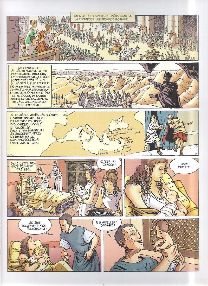 Georges, jeune chrétien de Cappadoce au IIIe siècle, est fils d'officier et cavalier accompli. Après la mort de son père, il marche dans ses pas et rejoint l'armée romaine. Quand l'empereur Dioclétien impose un culte païen à chaque citoyen de l'Empire, Georges refuse de trahir sa foi : il est mis à mort, et devient aussitôt un martyr dont le culte se répand en Orient. Son exemple a marqué les esprits, il devient au fil des siècles le modèle du chevalier chrétien. Au XIIIème siècle, le dominicain Jacques de Voragine écrit "La Légende Dorée" dont Saint Georges est l'un des principaux personnages. L'image du chevalier affrontant le dragon est née, elle ne fera que gagner en popularité dans toute la chrétienté, porteuse de l'image du combat contre le péché et de la victoire du Christ face au démon.