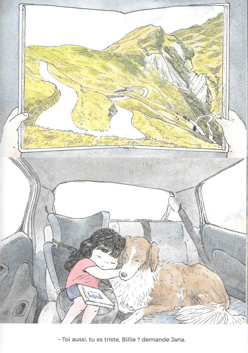 Jana part en vacances et, pour la première fois, elle va voir la montagne. Impatiente, elle passe le voyage à en parler à son chien, à poser des questions à ses parents ou à rêver de ce gros rocher aussi haut que les nuages. Mais quelle déception, en se rapprochant du chalet, elle découvre que la montagne se cache dans la brume. Ce soir-là, Jana s’endort inquiète et déçue. Pourra-t-elle enfin voir en vrai la montagne ?