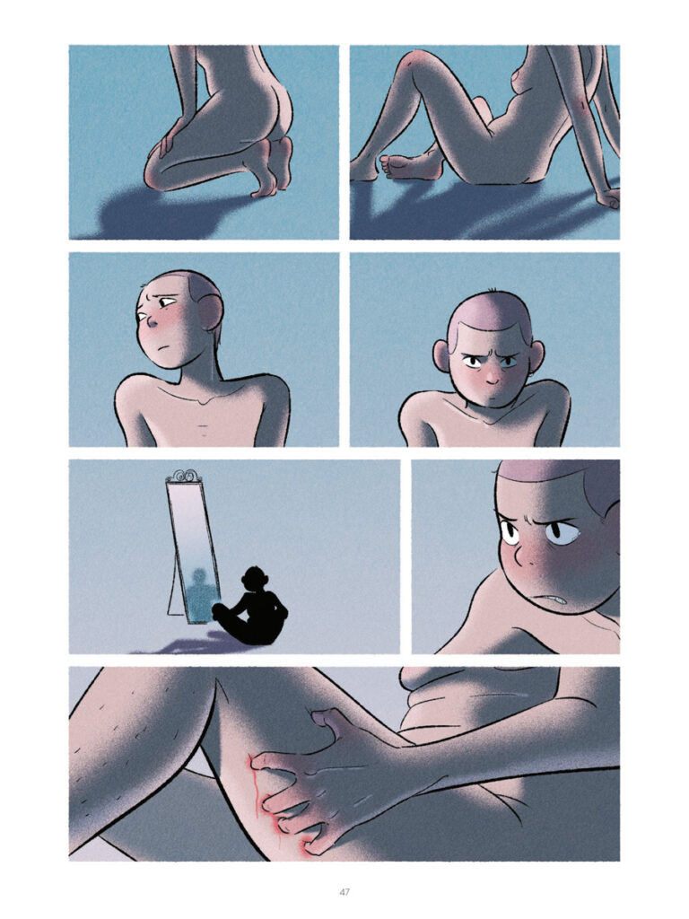 O estilo gráfico de Alix Garin é intimista; ela não busca efeitos chocantes ou exagerados, mas sim construir uma narrativa delicada, que torna visíveis os estados emocionais: angústia, vergonha, desejo, medo, esperança. As cenas de silêncio, o traço expressivo nos rostos, e a forma como o “interior” da personagem se manifesta (memórias, dúvidas, pensamentos) são centrais.