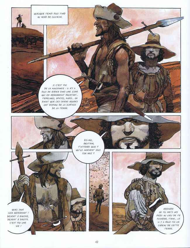 Car c'est en dessinant les reliefs de pierre, les vastes horizons que Sergio Toppi donne toute la mesure de son immense talent d'illustrateur : de son trait hachuré aux multiples arabesques, il insuffle une vie fascinante aux tourments des paysages comme à ceux de ses personnages.